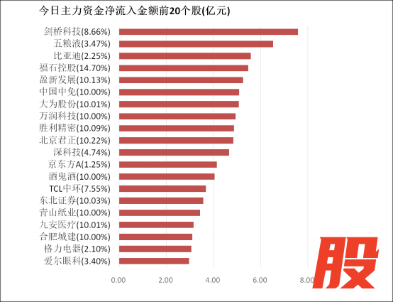 今日A股市场主力资金开盘净流出77.35亿元,尾盘净流入11.65亿元,全天净流出254.29亿元。