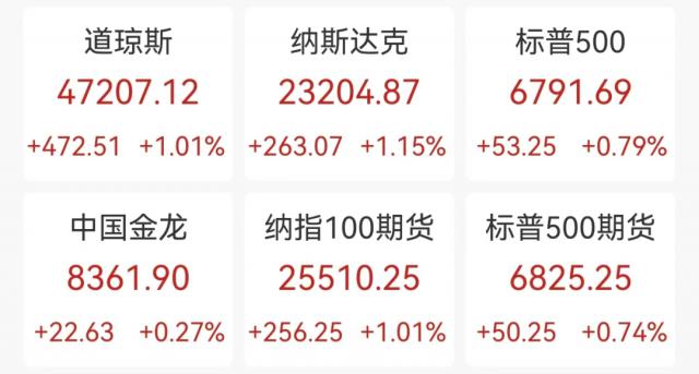 北京时间 10 月 25 日凌晨,美股三大指数集体收涨大牛时代,均再创历史新高。纳指涨 1.15%,本周累涨 2.31%;道指涨 1.01%,本周累涨 2.2%;标普 500 指数涨 0.79%,本周累涨 1.92%。美国 9 月 CPI 报告显示通胀状况温和,提振了投资者的乐观情绪。市场认为美联储可以维持其降息路径,从而促进经济并证明股票更高估值的合理性。